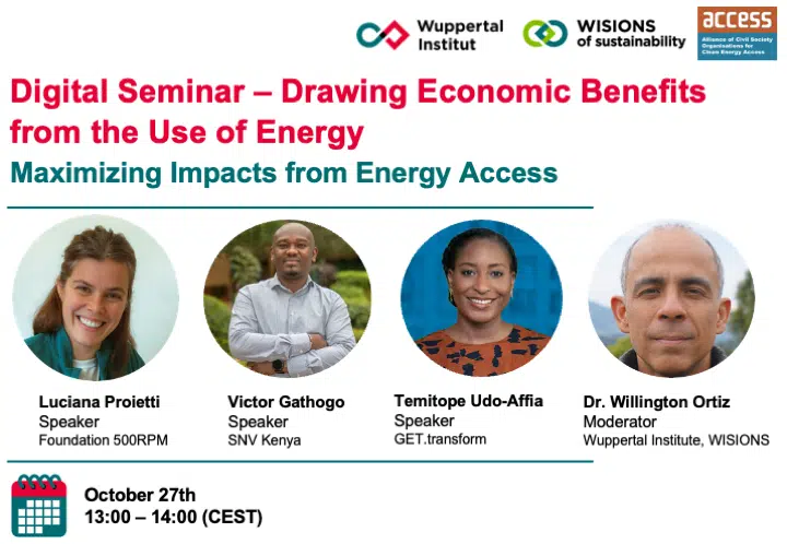 Providing people with energy access alone is not enough. It is the actual use of energy which can effectively improve the livelihoods of people. A digital seminar jointly organised by WISIONS and the Access Coalition will explore how energy access projects can create those opportunities.