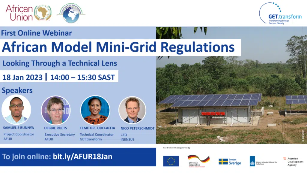 AFUR is the regional platform under the African Union, on which African energy regulators link up to address common challenges. As a means to increase rural electrification, mini-grids have become a key priority for many of AFUR’s members and GET.transform is a proud partner of AFUR in the endeavour to harmonise mini-grid regulation across the continent.